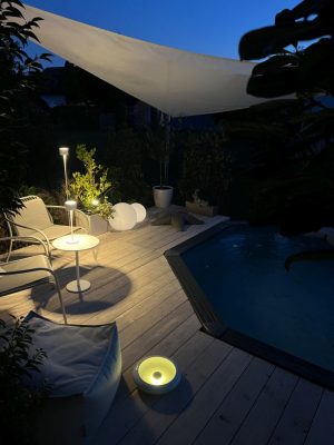 Hallo Ihr Lieben, ein Pool ist weit mehr als nur eine Erfrischung an heißen Sommertagen – er ist das Herzstück eines modernen Gartens, Ausdruck von Lebensstil und ein Ort, an dem Architektur und Atmosphäre miteinander verschmelzen. Besonders eindrucksvoll entfaltet sich seine Wirkung nicht am Tag, sondern in der Nacht, wenn Dunkelheit und gezielte Lichtinszenierung den Außenbereich in eine beinahe magische Bühne verwandeln. Während der Pool am Tag Klarheit, Struktur und Frische ausstrahlt, zeigt er sich nach Sonnenuntergang von seiner sinnlichsten Seite. Das Spiel aus Licht und Schatten, Wasserreflexionen und sanfter Dunkelheit verwandelt den Garten in eine Oase. Und genau hier setzt das Sonnensegel seine besondere Note: Es schwebt elegant über der Szenerie, fängt Lichtreflexe auf und wirft sanfte Schatten, die der Architektur Tiefe verleihen. Wie ein schützendes, zugleich leichtes Dach vollendet es die Atmosphäre und verstärkt das Gefühl von Geborgenheit und Exklusivität. Ein Pool bei Nacht lebt von der richtigen Beleuchtung. Statt greller Strahler schaffen dezente, indirekte Leuchten ein sanftes, fast schwereloses Ambiente. Das Sonnensegel trägt dazu bei, indem es die Lichtinszenierung subtil rahmt und die Reflexionen des Wassers aufgreift. So entsteht eine Stimmung, die nicht nur den Garten erhellt, sondern Emotionen weckt – ein Ort, der Ruhe schenkt, Leichtigkeit vermittelt und zugleich einen Hauch von Luxus versprüht. Das besondere Zusammenspiel von Stille, Bewegung und der schwebenden Eleganz des Sonnensegels macht einen Pool bei Nacht zu einem faszinierenden Erlebnis.