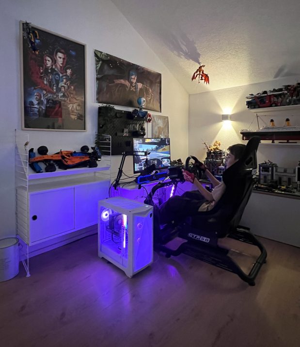Hallo Ihr Lieben, Tom hat sein Zimmer in einen echten Racing-Raum verwandelt – und jeder, der ihn besucht, merkt sofort, dass hier nicht einfach gespielt, sondern gefahren wird. Toms Zimmer ist ein Ort, an dem Technikbegeisterung, Designanspruch und purer Rennsportgeist zusammenkommen, ebenso wie seine zweite Leidenschaft, den Klemmbausteinen. Angefangen hat alles mit einem neuen Hochleistungsrechner,